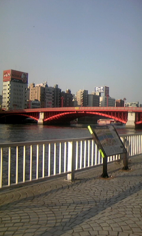 原宿のとある場所でのバーゲンに連れていってもらい、そのあとマックでご飯を食べて竹下通りを抜けて表参道まで歩き、目的を失ったのでマックフルーリーを初食べしながら相談した結果、浅草に行って雷門を写メって人力車のにーやんをうまくかわし、夕日を見ながら隅田川沿いのベンチに腰掛け、夕日が沈みそうになったので帰ってきました。